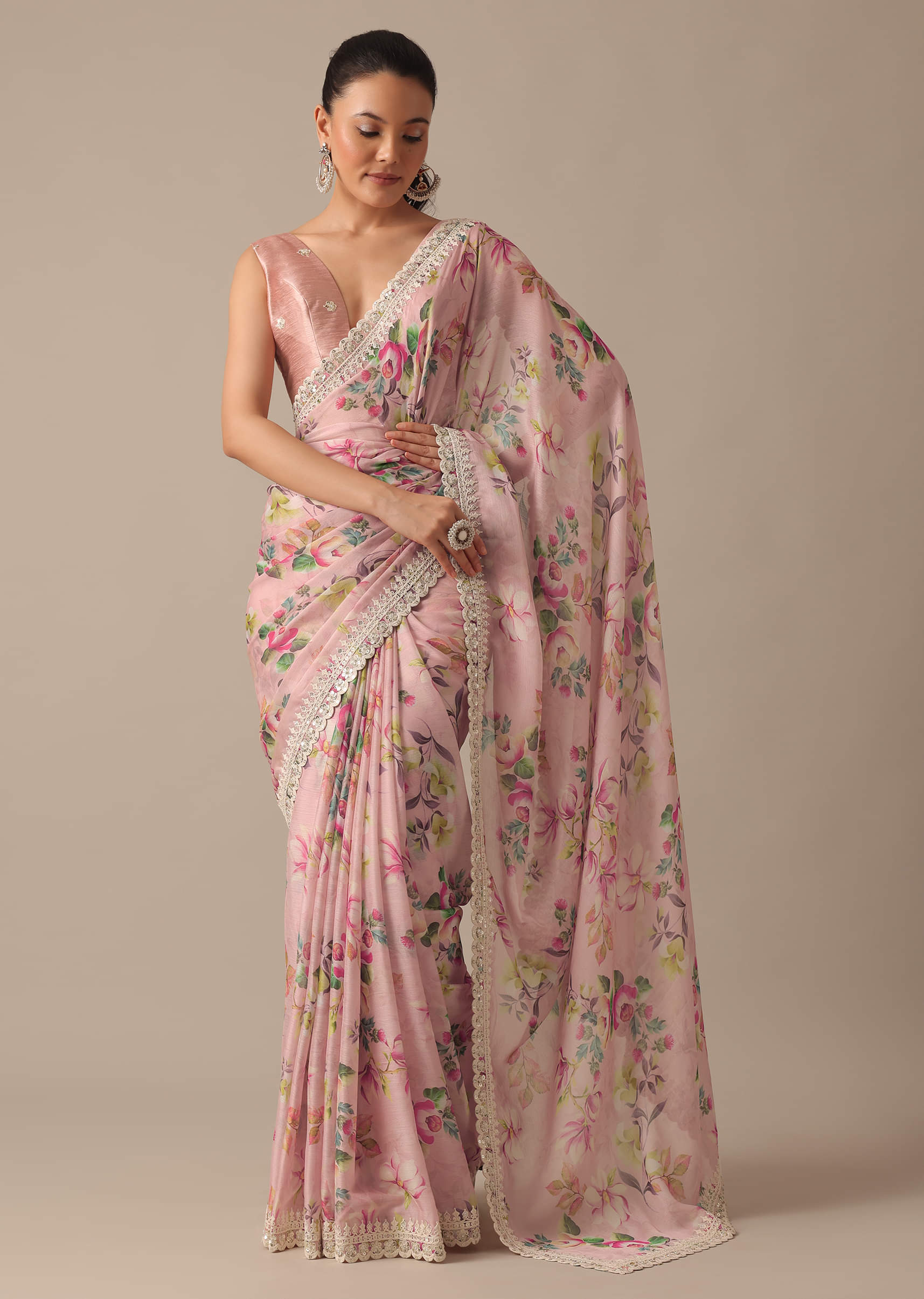The 'floral saree online' expresses the classic beauty of Indian women. Its modest draping style, accentuated with fancy embroidery and motifs, reflects grace and elegance. It's a sartorial choice that respects tradition while celebrating womanhood.