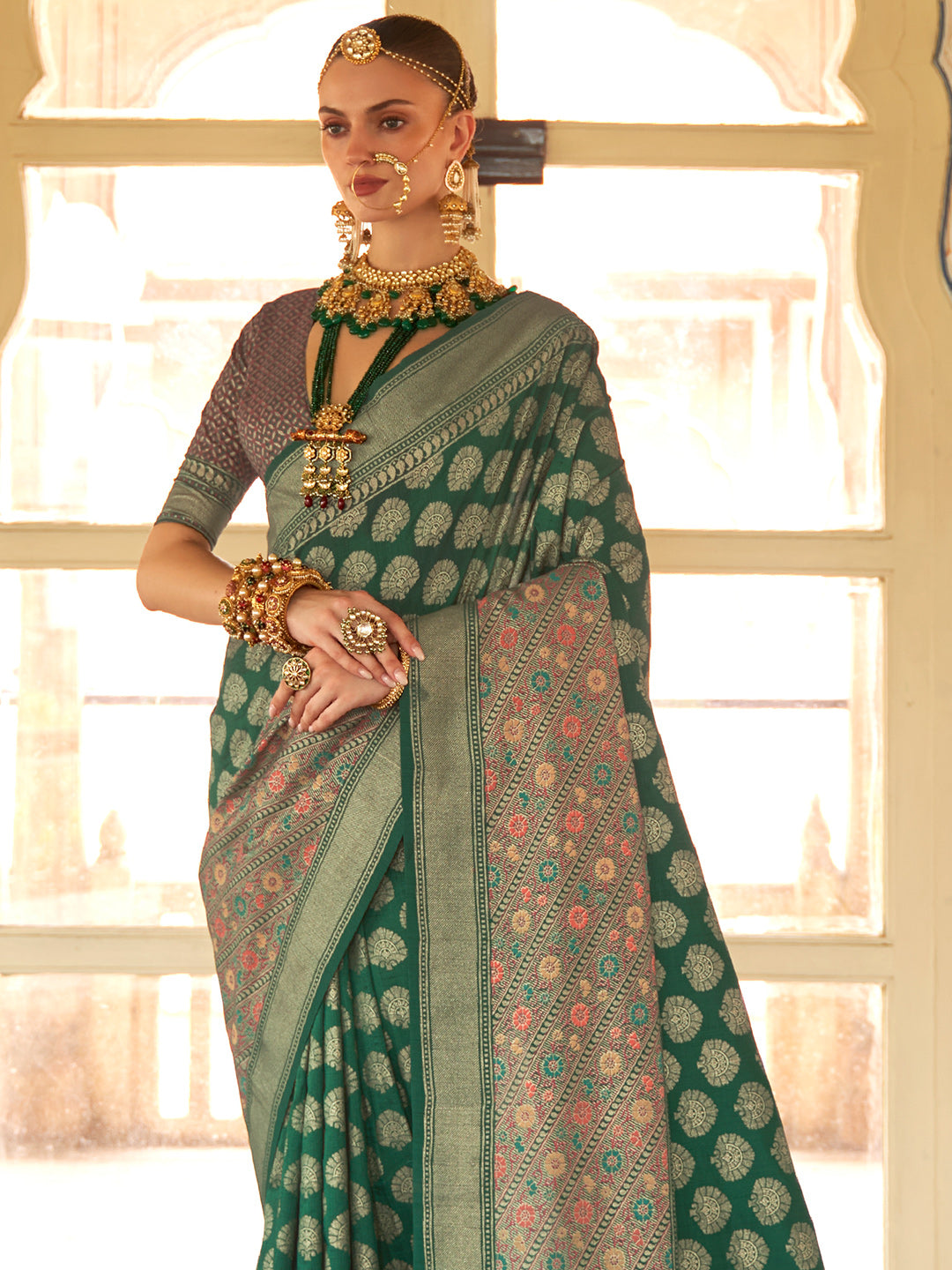 Green Banarasi Saree (Top Collection) - Gulbhahar