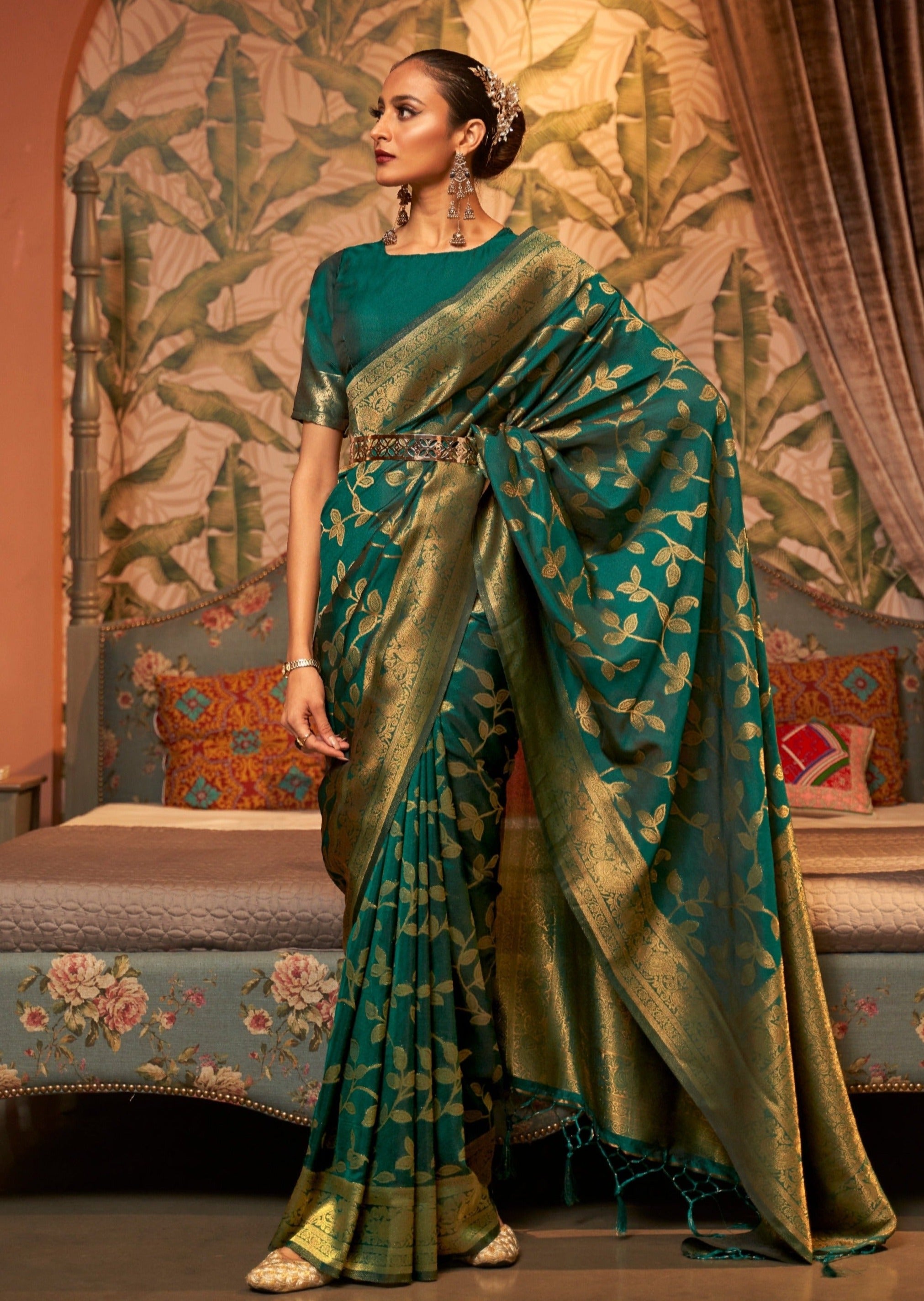 'Green banarasi sarees' are an integral part of Indian celebrations, adorning women during weddings, festivals like Diwali and Holi, and family gatherings. Their lively hue symbolizes joy, prosperity, and good fortune, making them a perfect choice for any festive occasion.