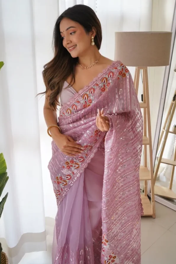 The light saree is a unifying force that tops generations. From grandmothers to mothers and daughters, it is passed down as a cherished family heirloom, carrying with it memories of love, laughter, and shared traditions.