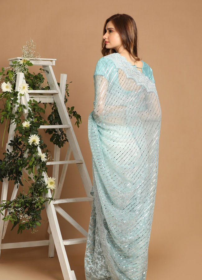The hand-done motifs and detailed embroidery on a net saree are testaments to the art of Indian handworkers. Each piece reflects the wearer's taste for respected elegance, modesty, and feminine charm. The fine workmanship ensures that the saree is not just an outfit but a story of cultural culture.
