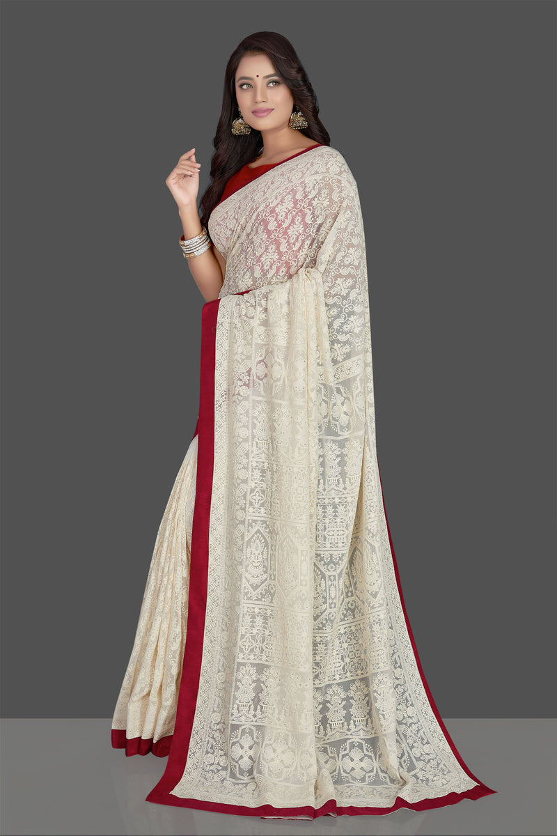 Off White Saree With Red Border - Off White Sarees - Gulbhahar