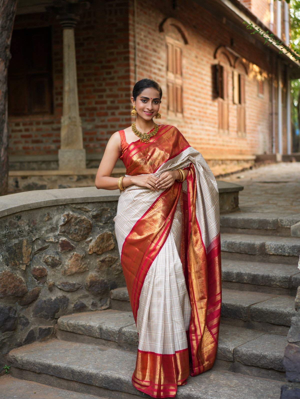 From grandmothers to granddaughters, the off white saree with red border has been a staple in families for generations. It's not just a saree; it's a family heirloom that holds memories of joyous occasions and lasting traditions.