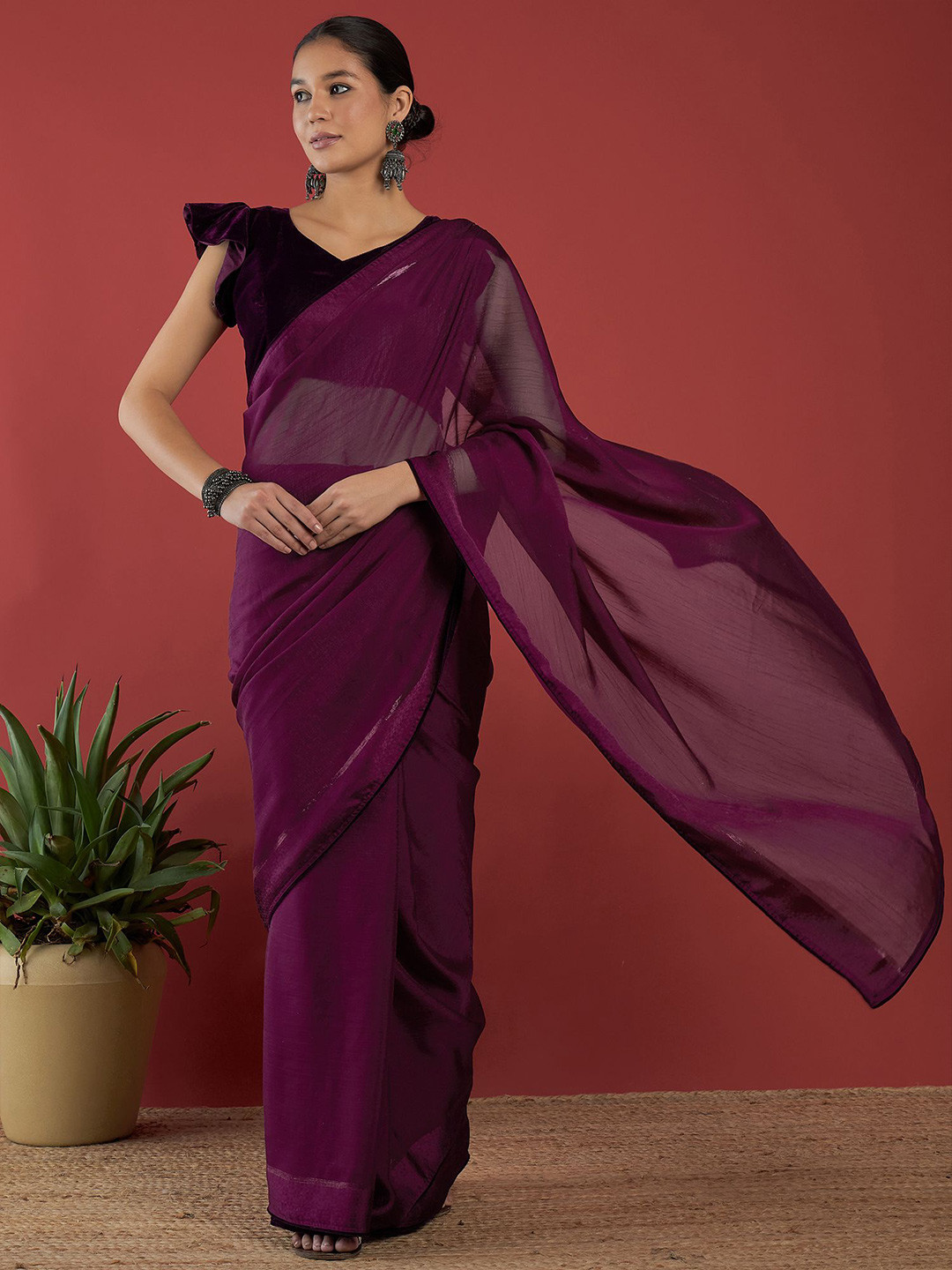 To preserve classic values, opt for the Nivi style draping. Begin by tucking the saree into your petticoat, wrap it around your waist, and pleat the pallu neatly before securing it over your shoulder. This modest and refined style is perfect for family pujas.