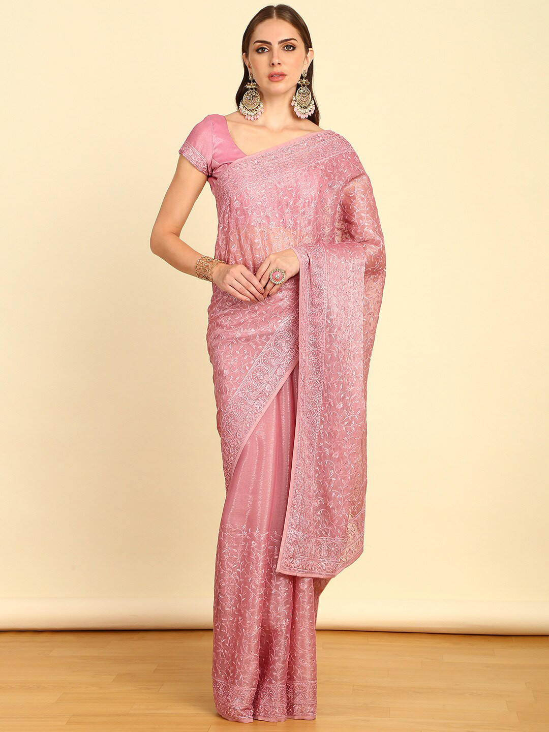 Our handworkers' dedication to preserving customary techniques ensures the art of pure chiffon saree weaving continues to thrive.
