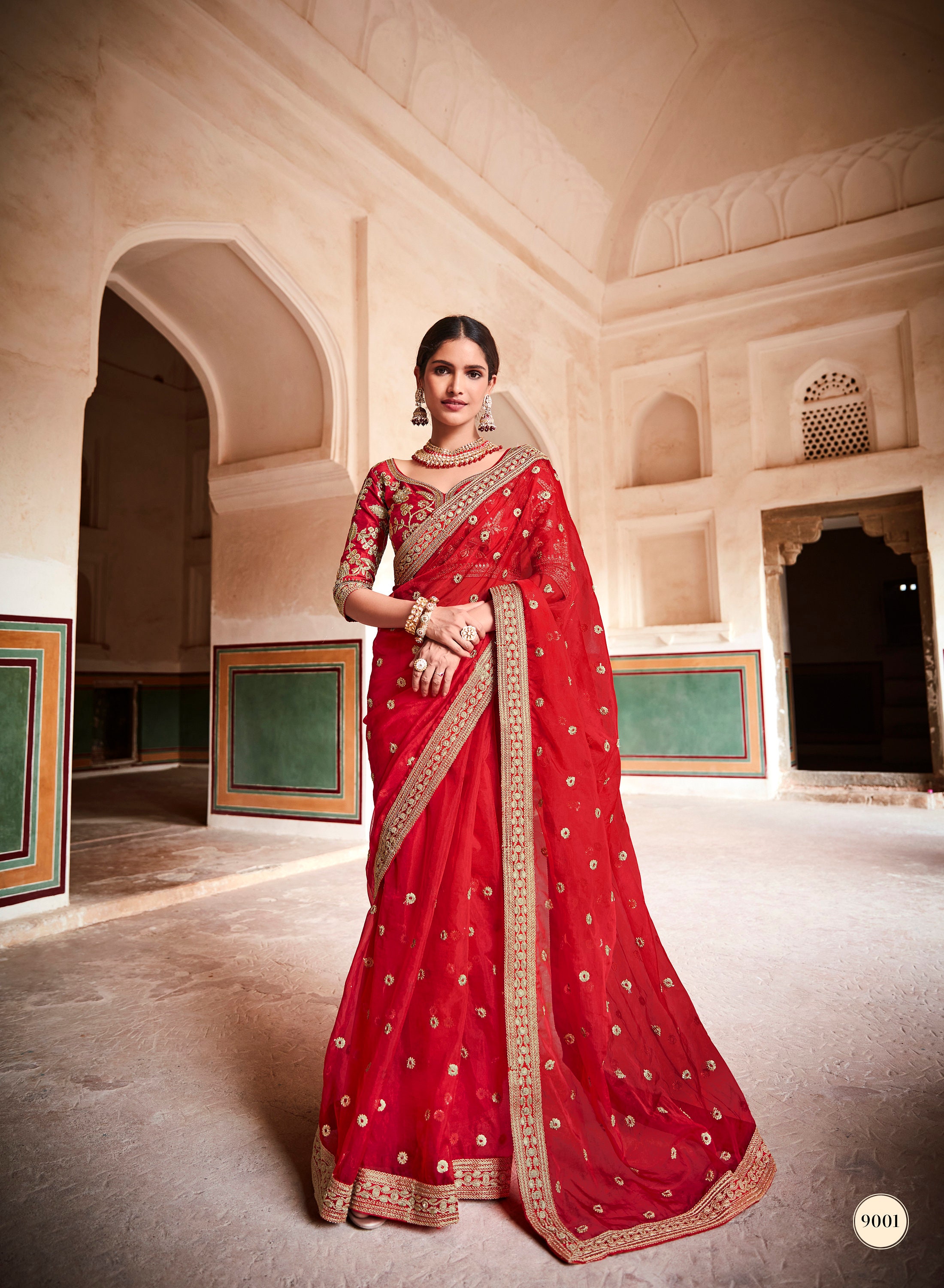 Our red bridal sarees are more than just garments; they are symbols of cultural identity and tradition. They embody 'shakti' (strength), 'shraddha' (devotion), and 'saubhagya' (good fortune). Every woman who wears it carries these values with grace.