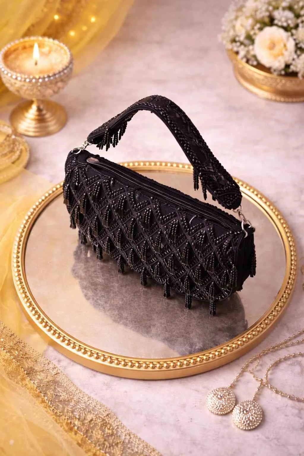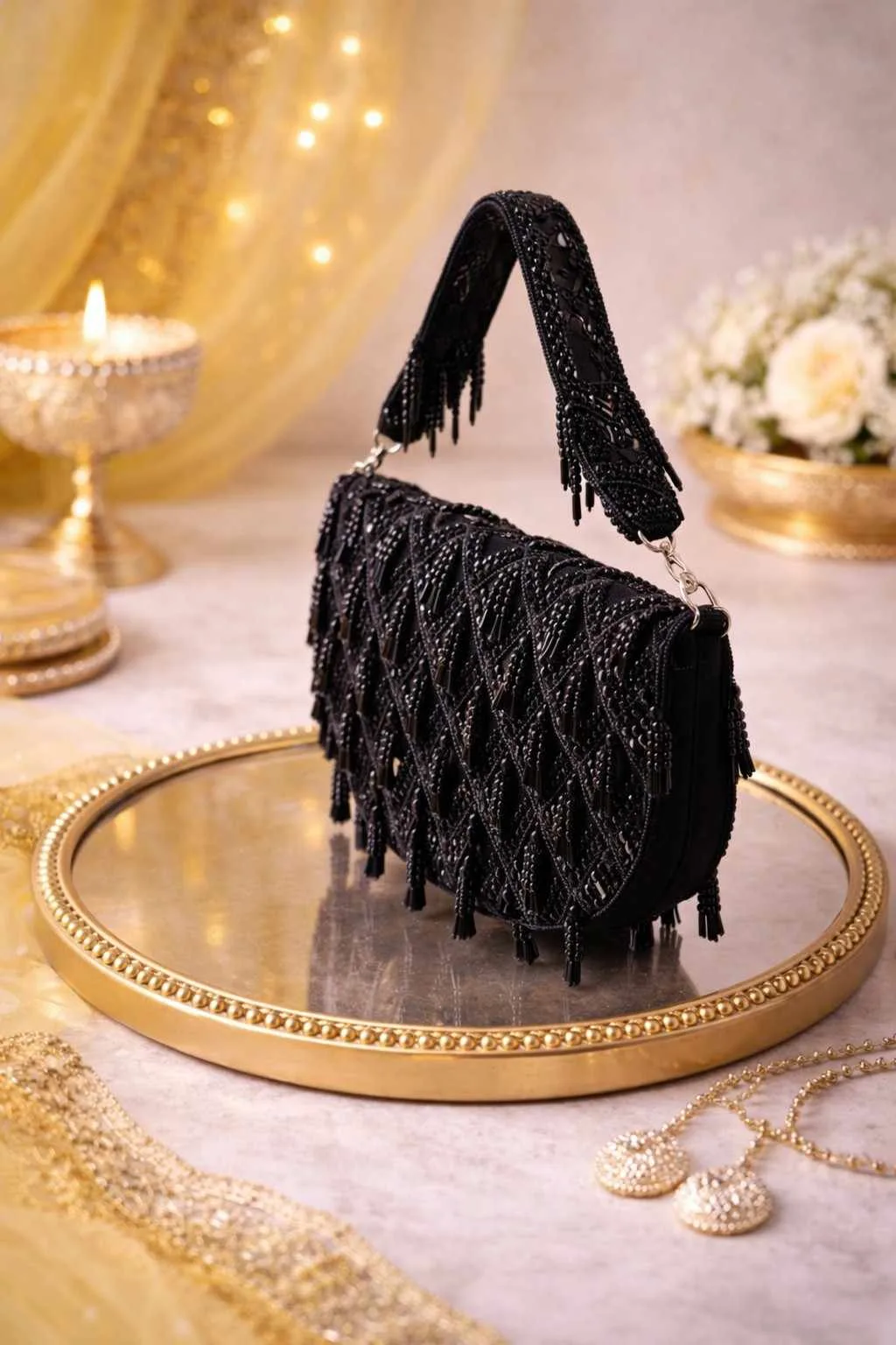 ✦Each tassel sways with purpose, catching the light like secrets you almost told. Crafted by patient hands and inspired by nature’s most regal hue, Black Bead brings depth, mystery, and undeniable charm to every look.