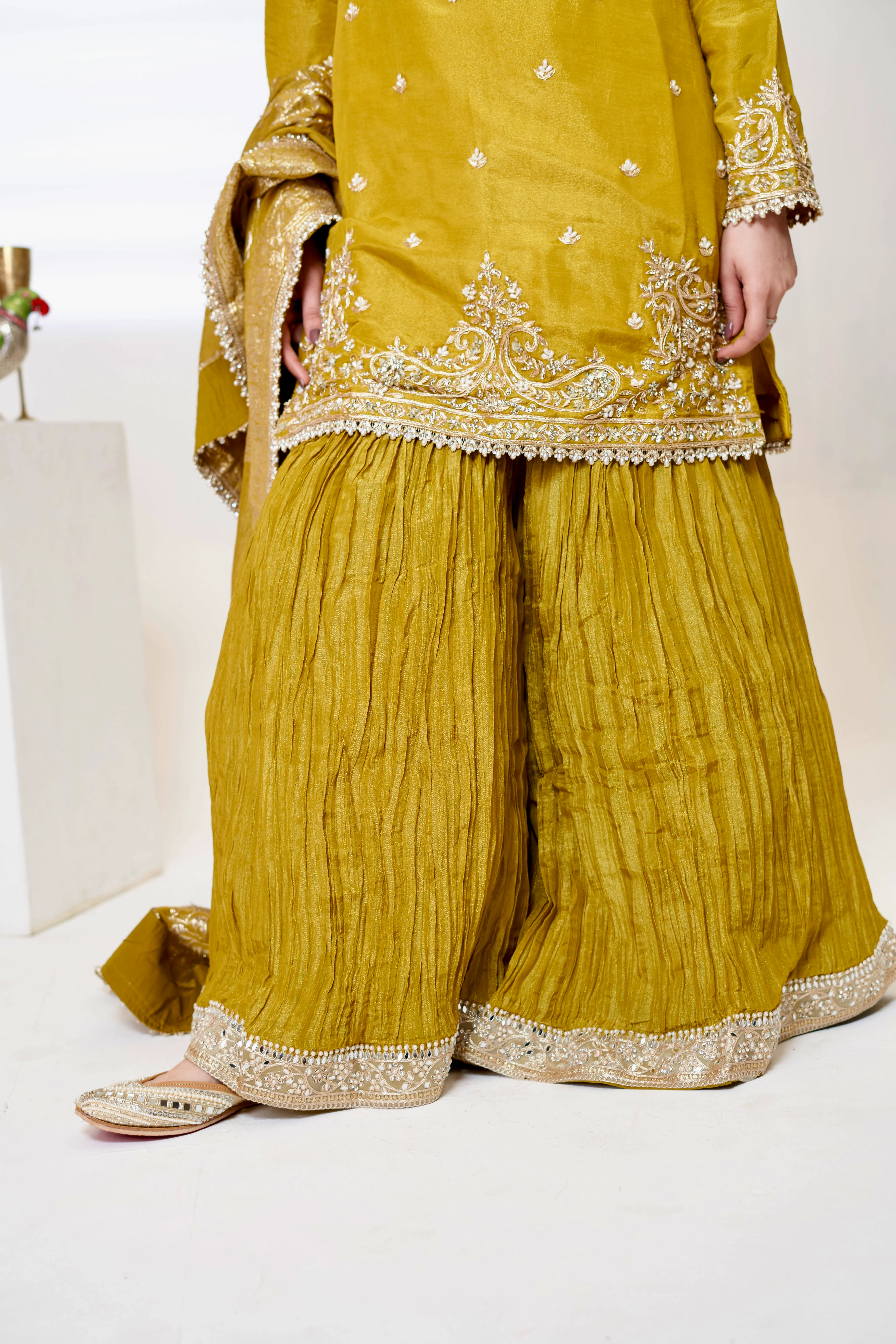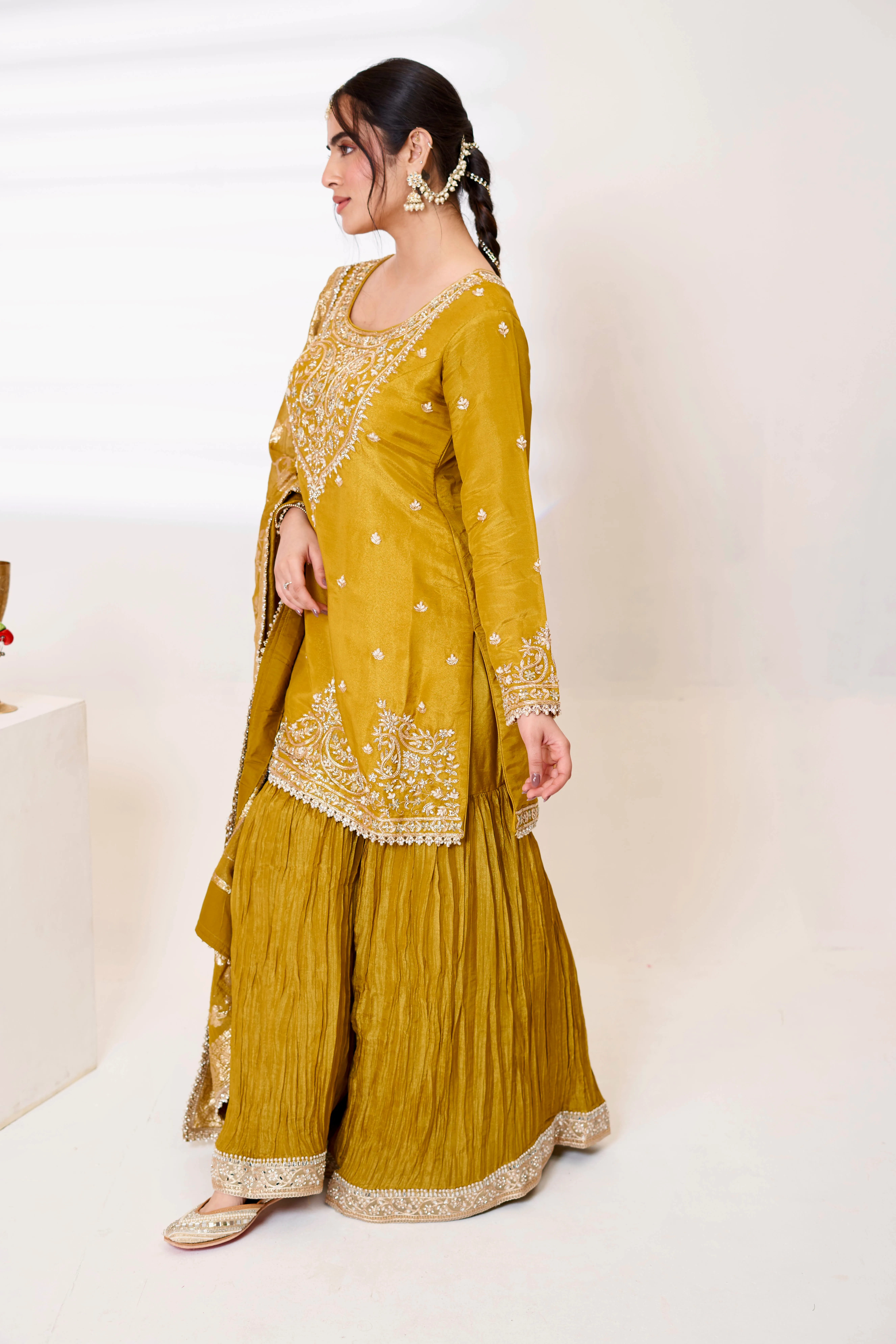 Pink Satin Embroidered Sharara Suit Set