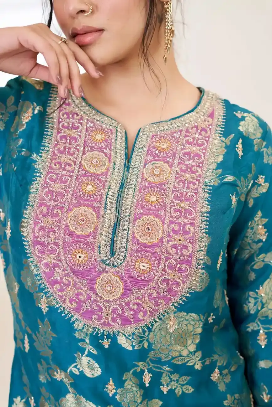 Multicolor Printed Silk Farshi Salwar Set
