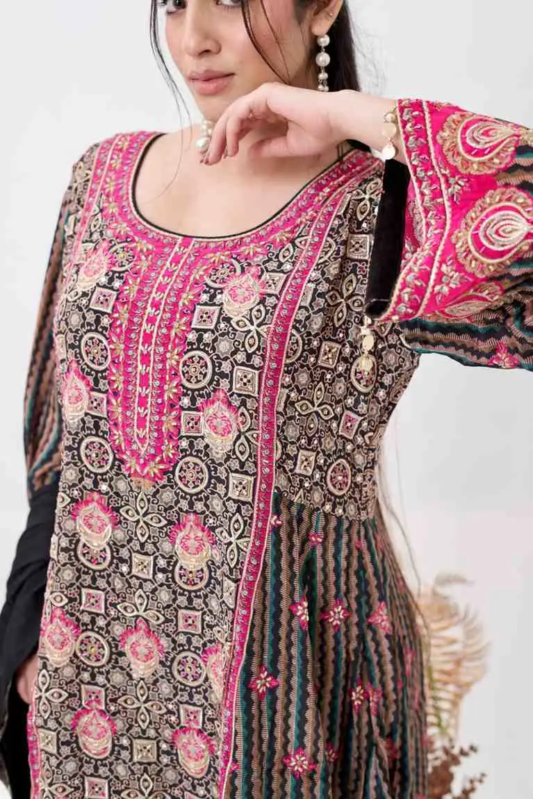 Orange Satin Kurti Set with Dupatta