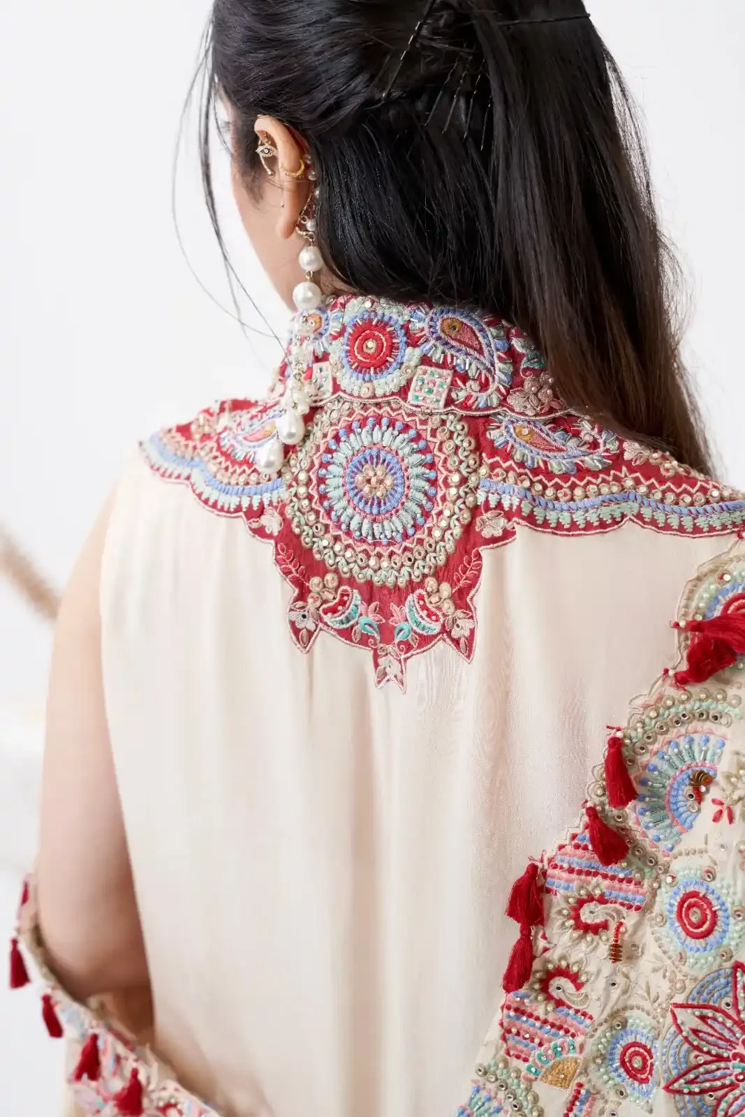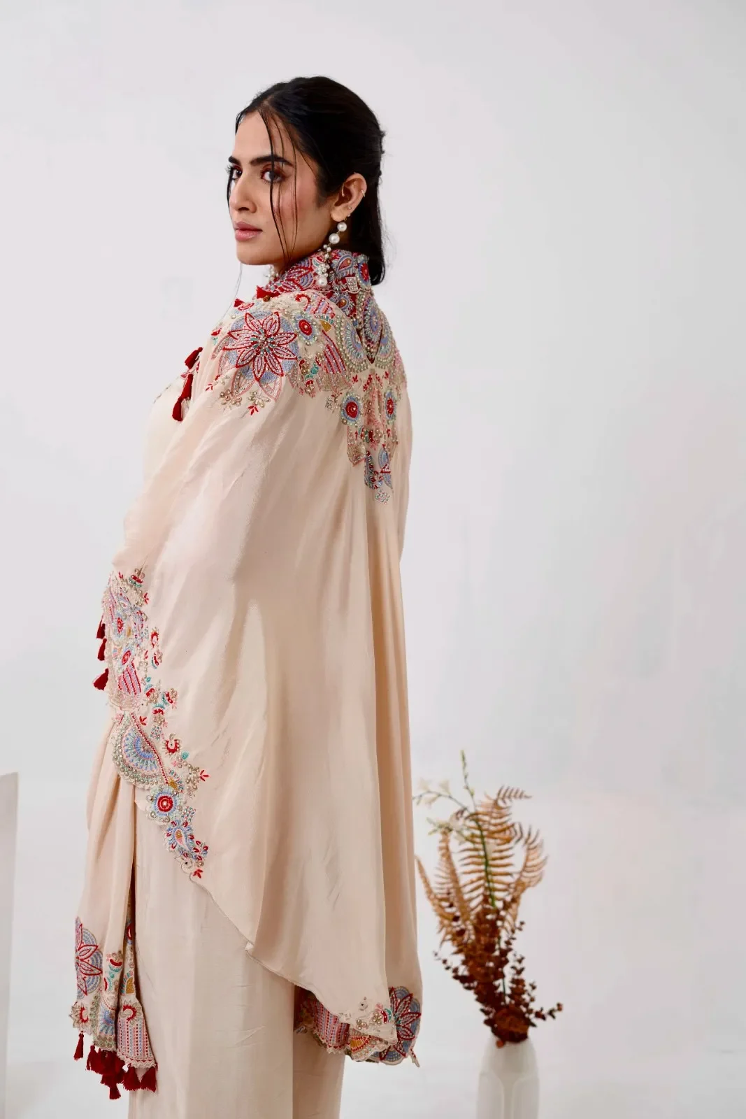 Cream Satin Co-Ord Set with Shrug