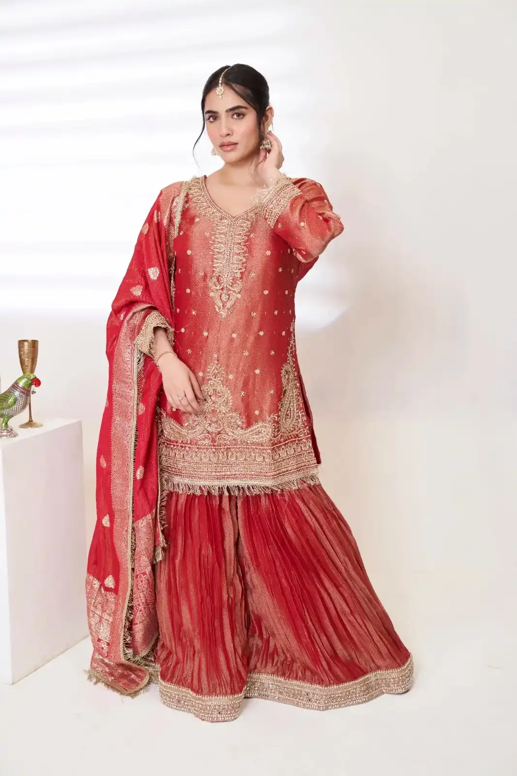 Orange Satin Kurti Set with Dupatta