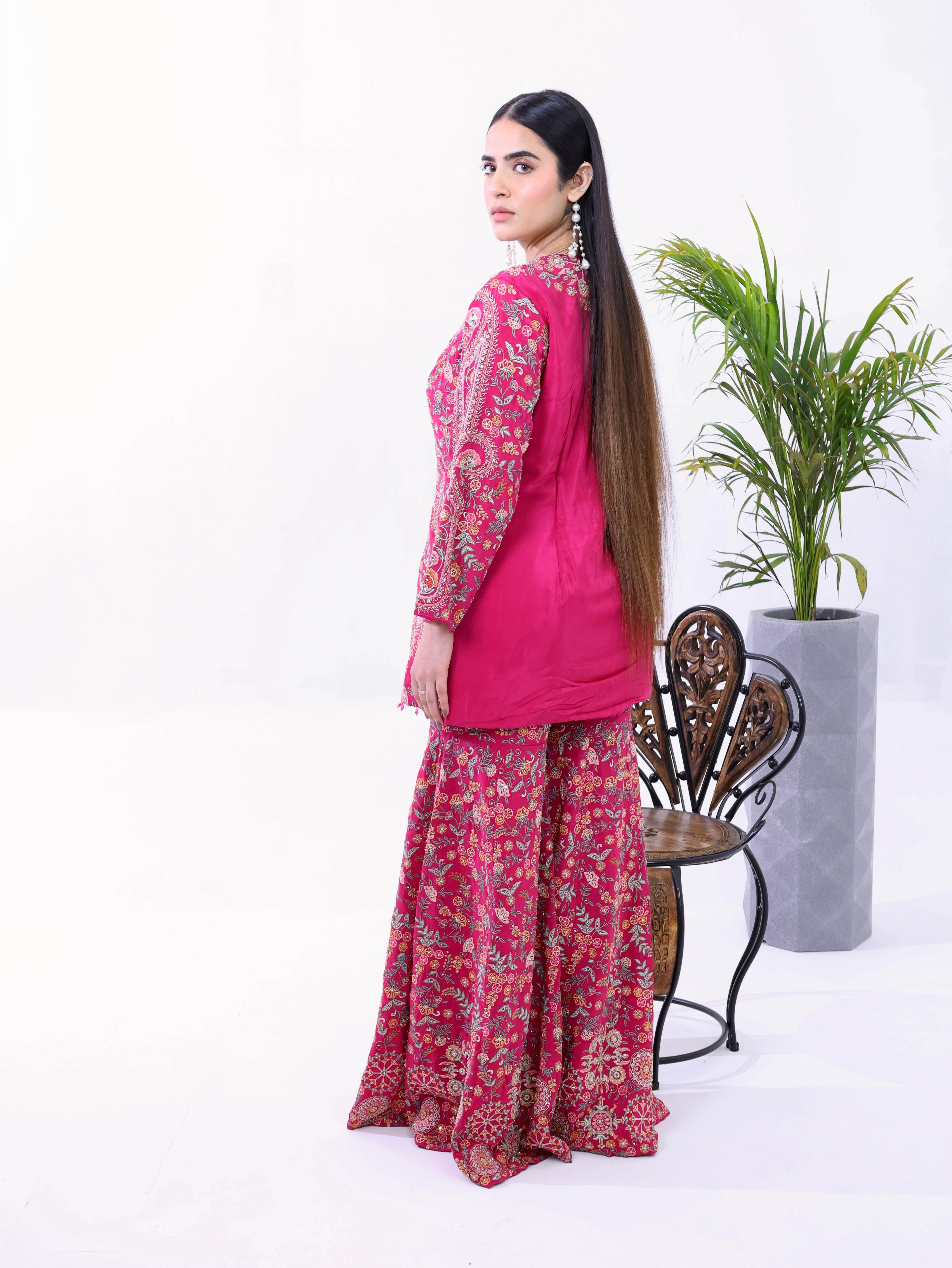 ✦Bottom - Flare straight sharara pant with full embroidery
