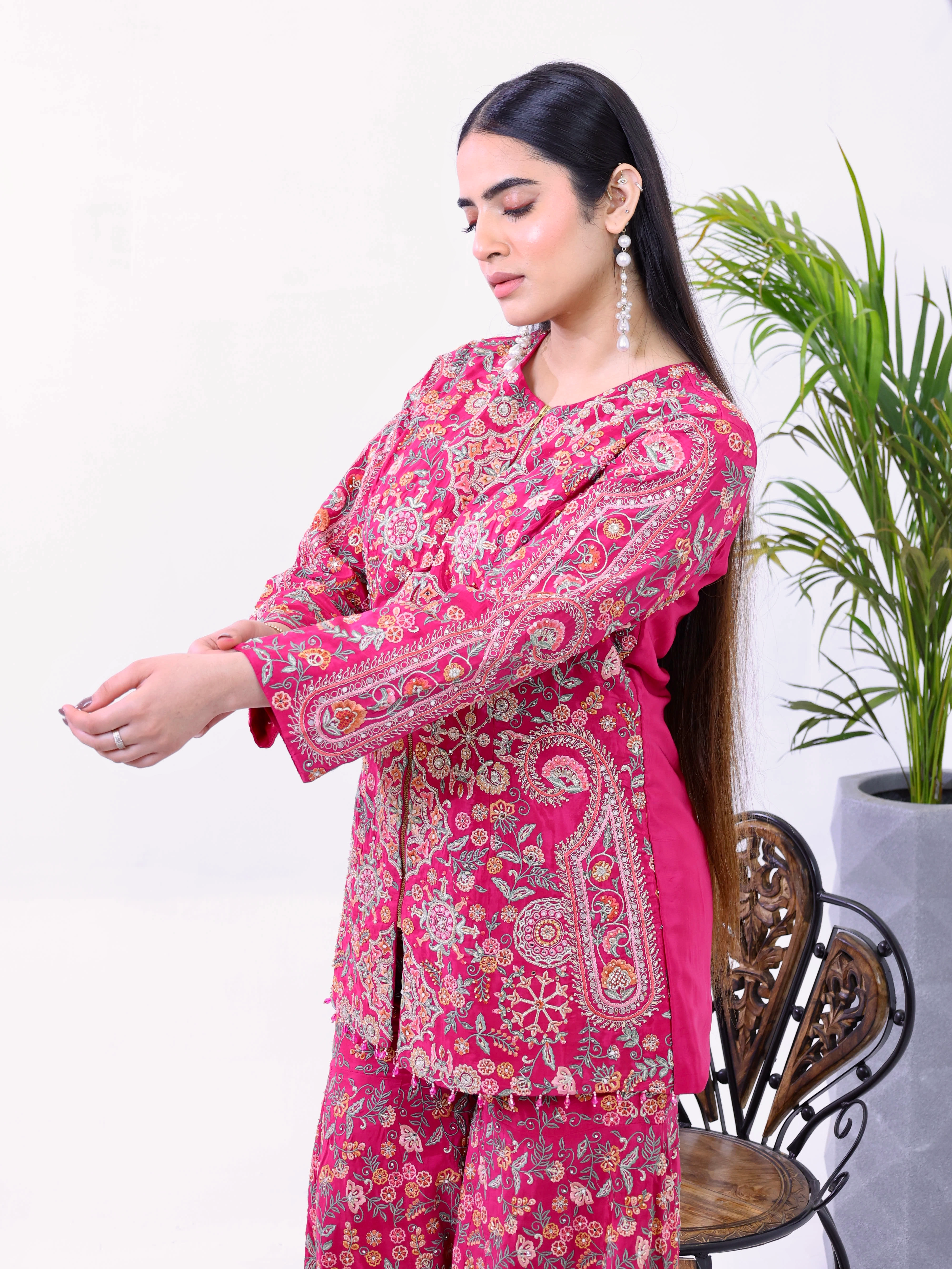 Dark Pink Embroidered Kurti Set