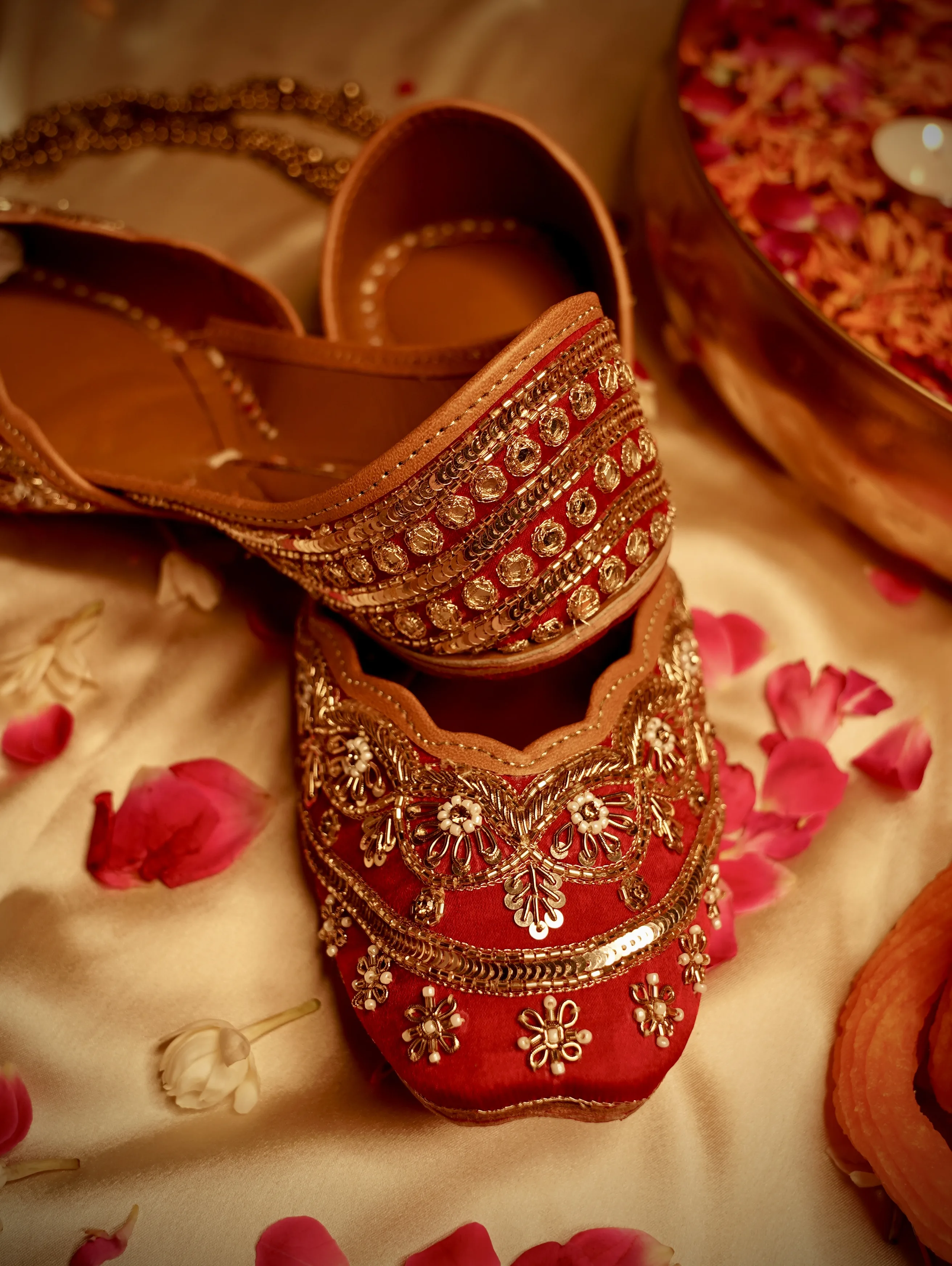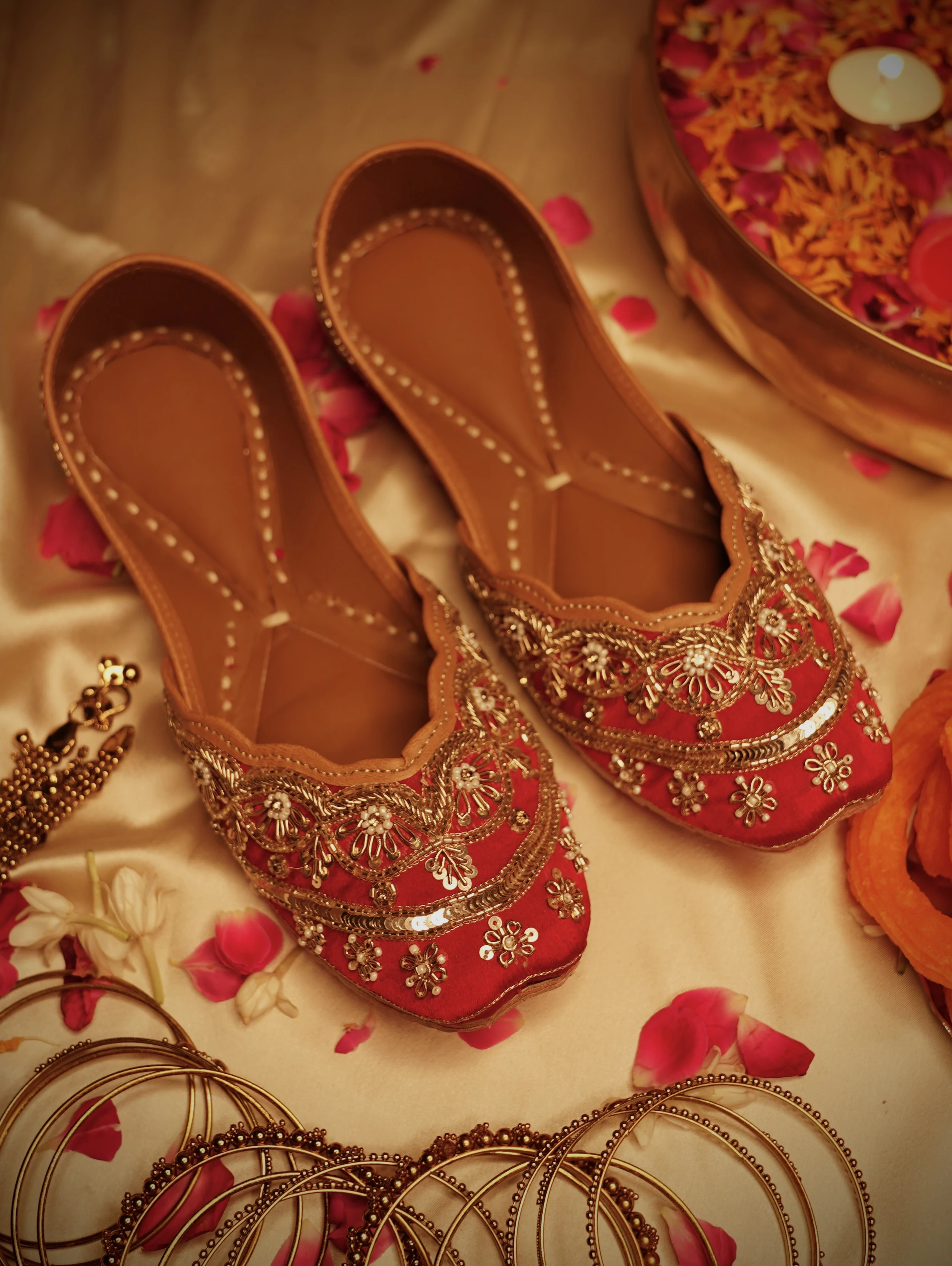 - •Shop Lal Ishq bridal juttis by Gulbhahar, featuring exquisite red base and golden hand embroidery. Handcrafted in 48 hours with bold elegance and traditional grace.