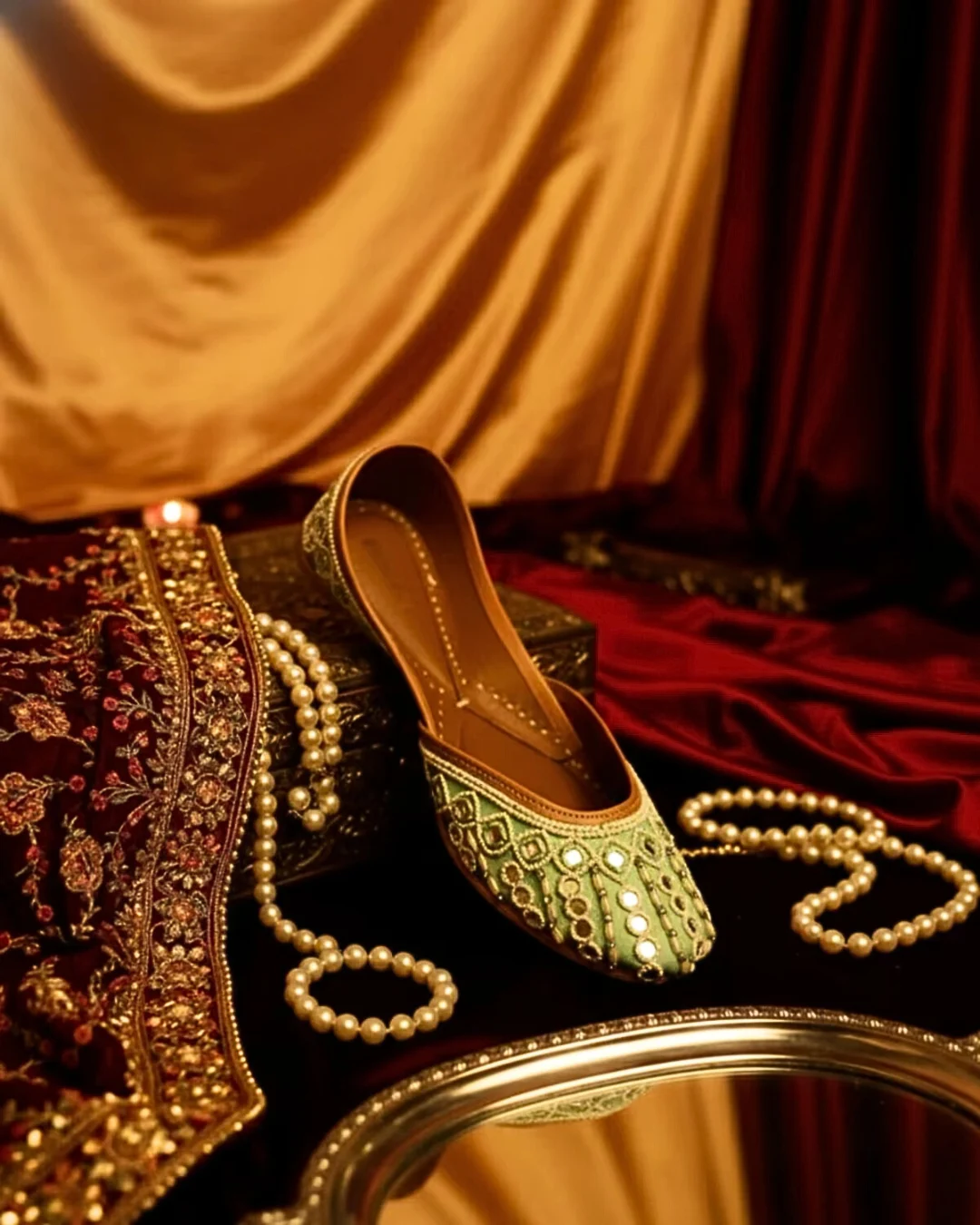 - •These juttis represent a true masterpiece of elegance and craftsmanship. The pearls elevate the design, making it opulent.