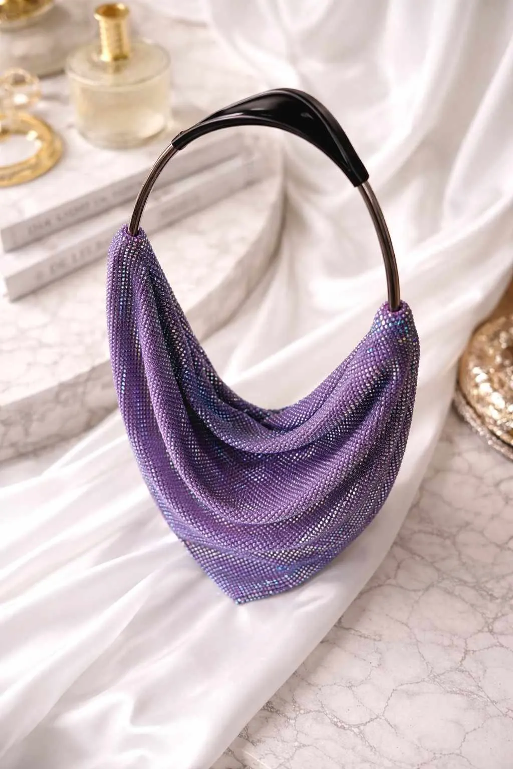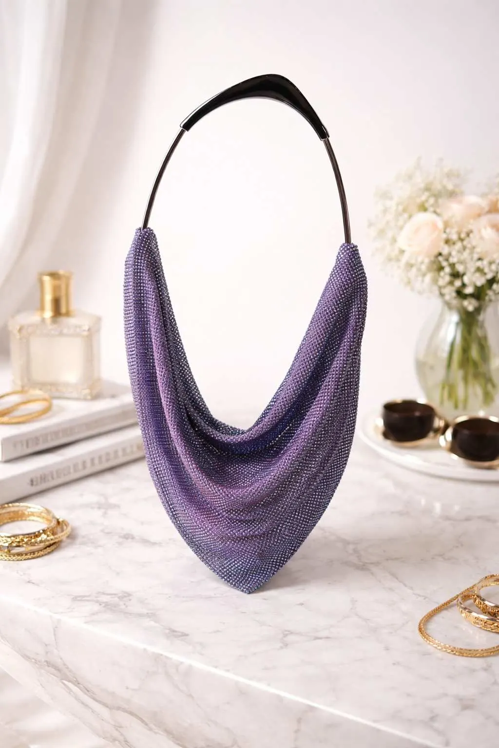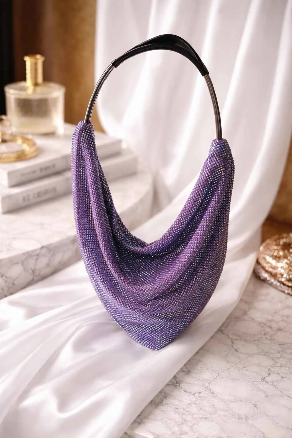 - It’s hand-beaded with violet shimmer crystals that give the bag an effortless touch of glamour.